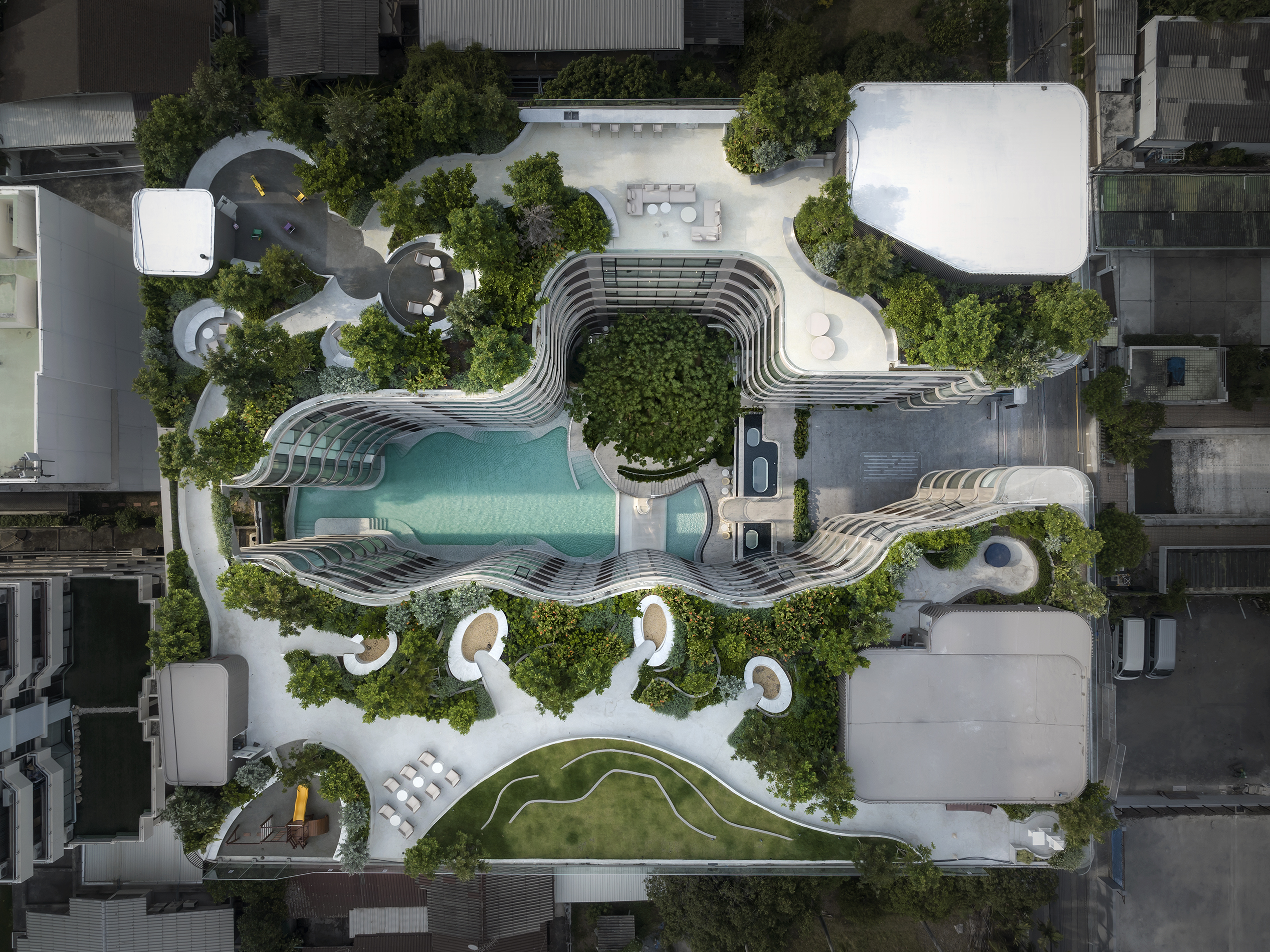 Overall, "FYNN ASOKE" merges aesthetic appeal with sustainability, addressing user needs for comfort and beauty while integrating modern design principles in landscape architecture.