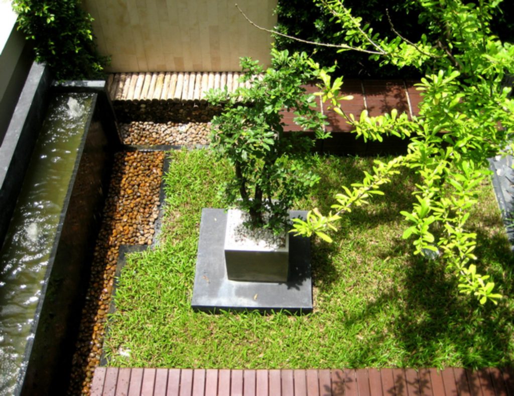As the result, we managed to build the Garden, with a very little budget, as an interesting piece of Green Area. Because the location is right at the Main Traffic Junction of the district, Local People and the Passerby also love the project. Its Green Landscape helps them reducing stresses from the congested Traffic around the area. And for the customers of the project, mostly young professionals, love the distinguish look of the Garden.