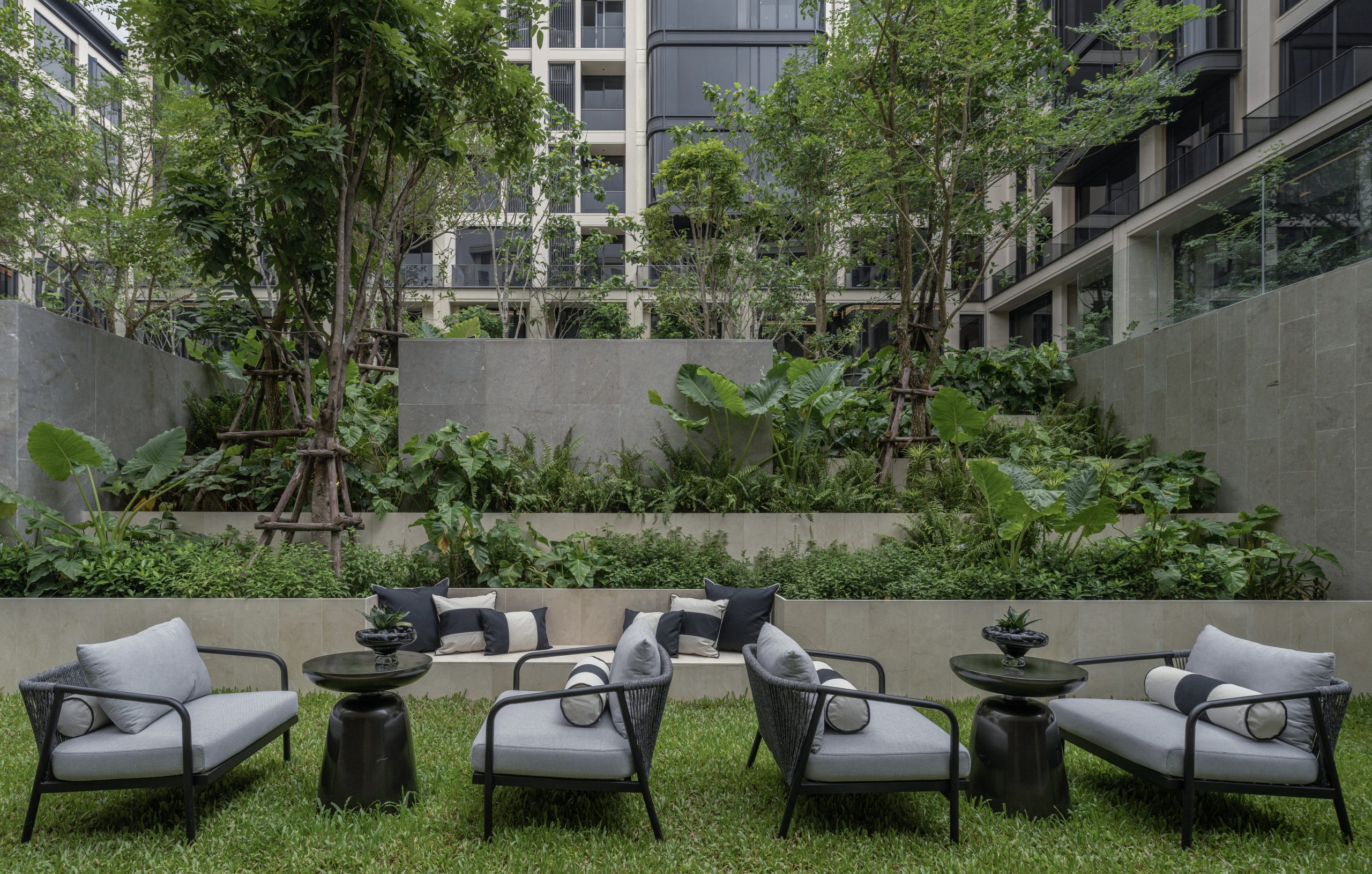 Multi-layered landscape, both in plan and sections, is carefully crafted to create hideaway sanctuary for a residential project in the middle of prime Sukhumvit district.